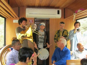 Hey yet again bloggers or whoever could be reading this blagh. And so it’s actually Underground Horns went to Brazil as I type this blog post. And some good friends Underground Horns went to Brazil to play some audio gumbo above ground on a Brazil festival ground and all I got was this postcard photo that finds itself posted above. And it was one of those Tudo é Jazz 2013 Brazil Jazz Festivals in Ouro Preto that I would have liked to have been taken along to even in a suitcase if I could have been to bring those Brazil dancing shoes. And that Tudo E Jazz Oficial Facebook page description of this Underground Horns goes to Brazil event read something like: