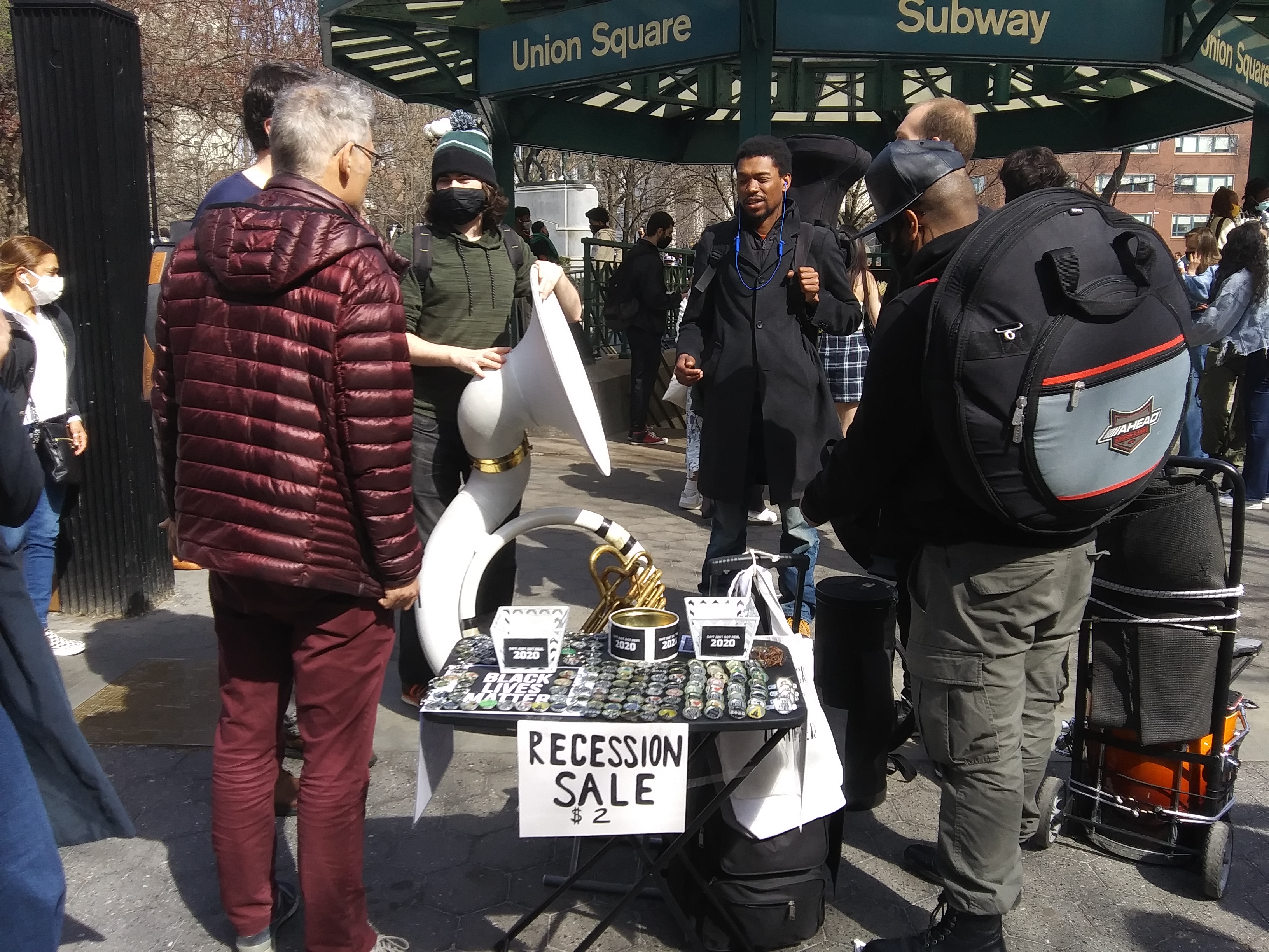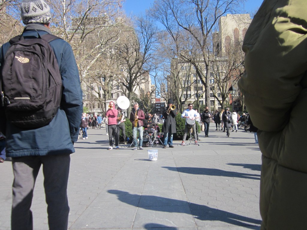 And then it was seen again that Underground Horns were busking again at Union Square Park during that Union Square Farmers Market near that Gandhi statue. and there was also an anti vaccine rally there on this day.