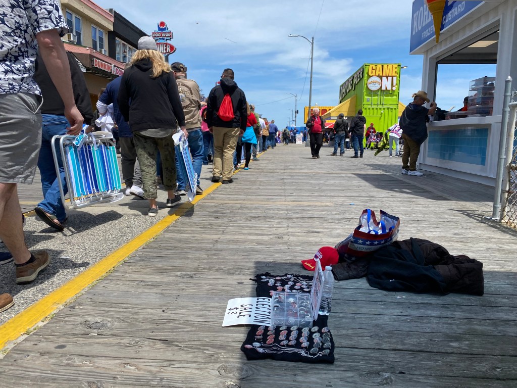 And President Trump hosted a rally on the beach in Wildwood, New Jersey last week and so I attempted to vend #Trump2024 jewelry on Wildwood boardwalk as Trump voters took over Wildwood Beach during his campaign rally. The crowd was estimated between 80,000 to 100,000 and the line stretched all the way past that Election Sale on the boardwalk as Trump rally brings economic boost to Wildwood, New Jersey boardwalk.