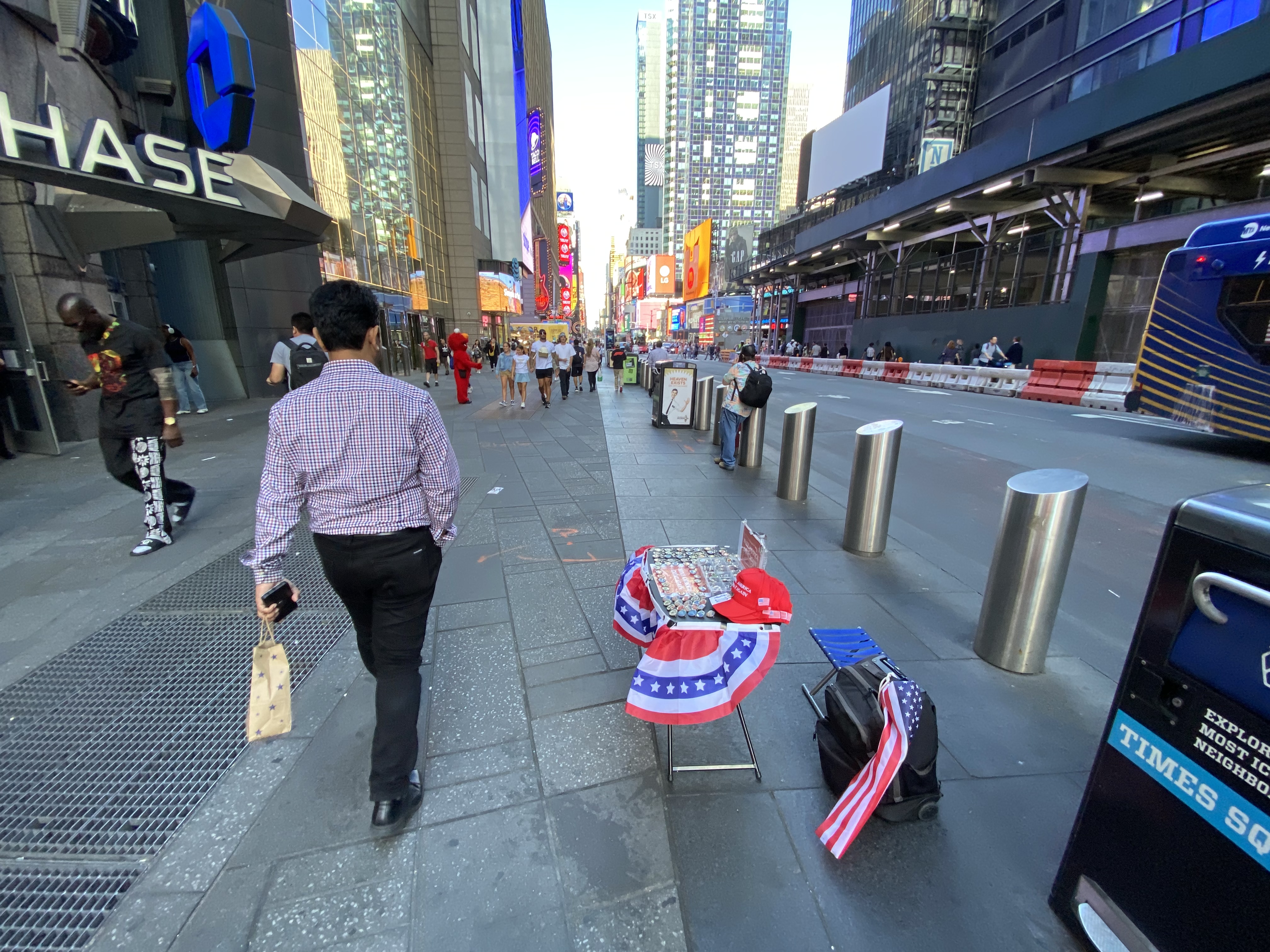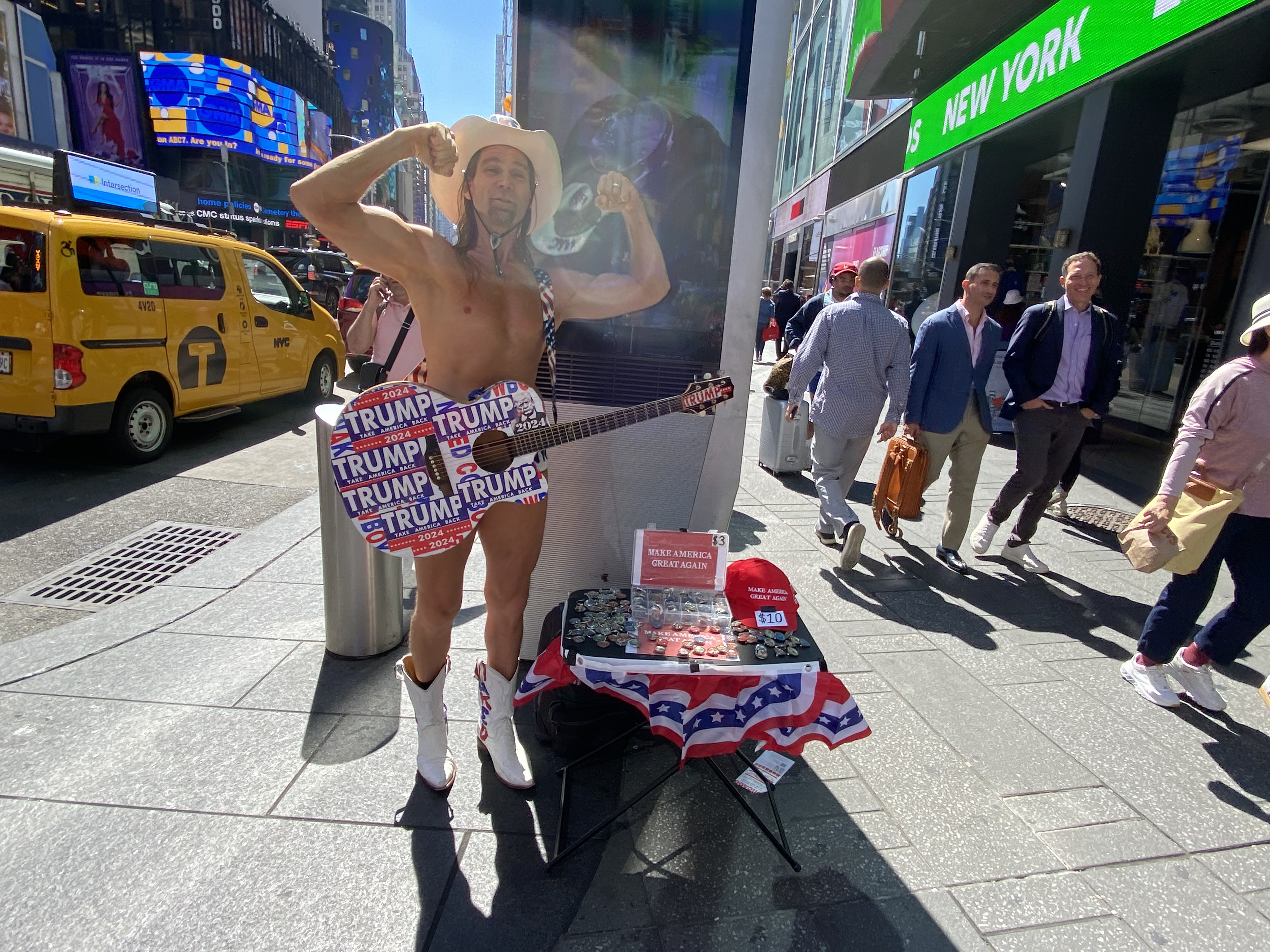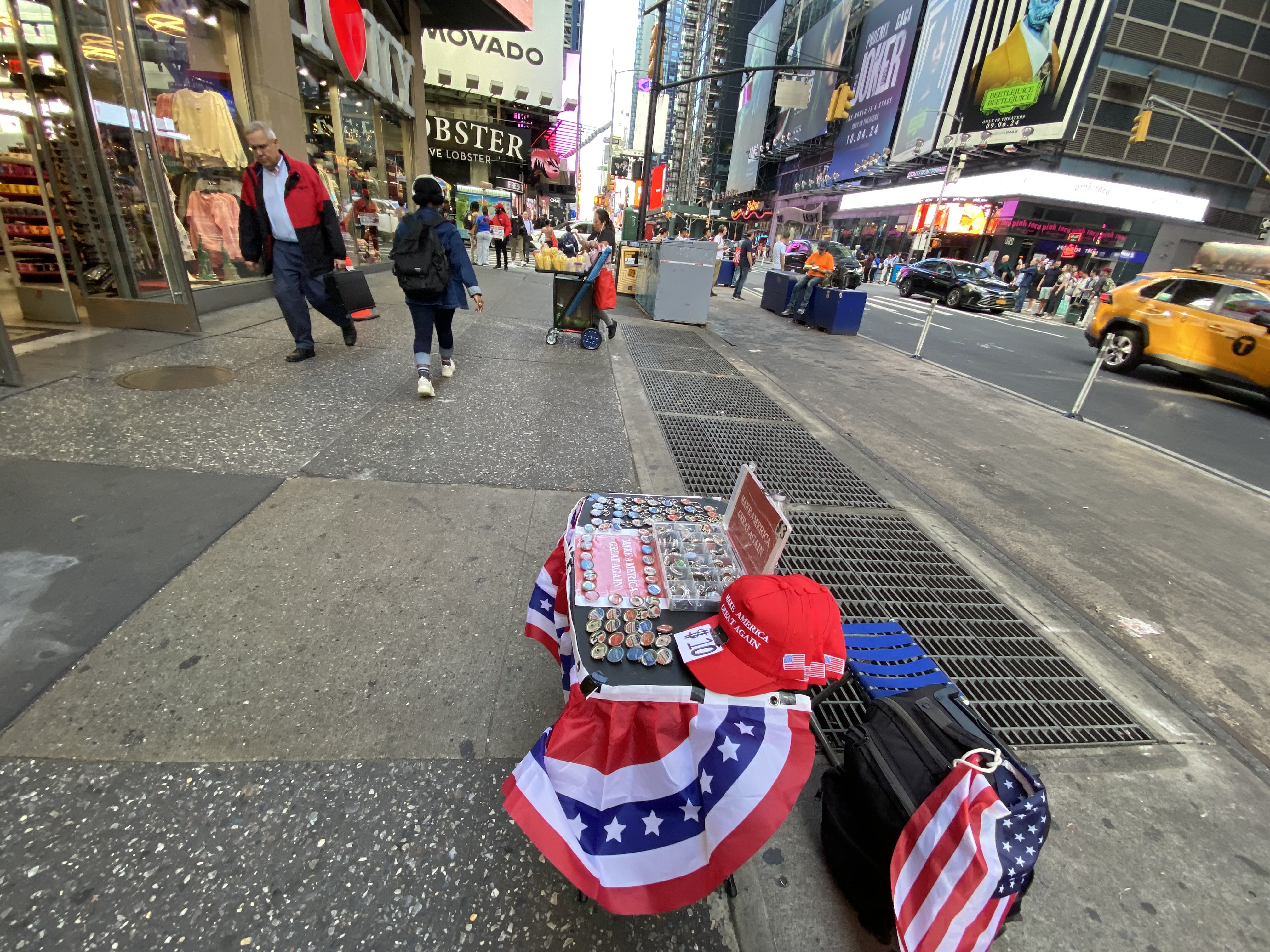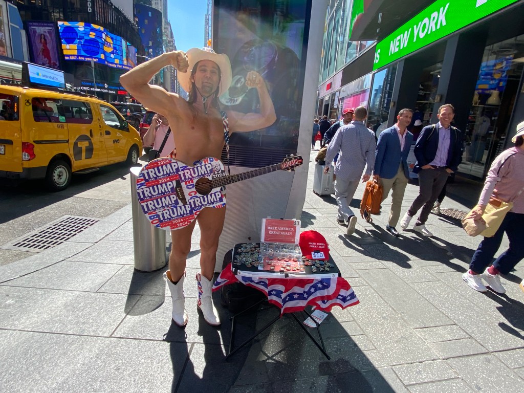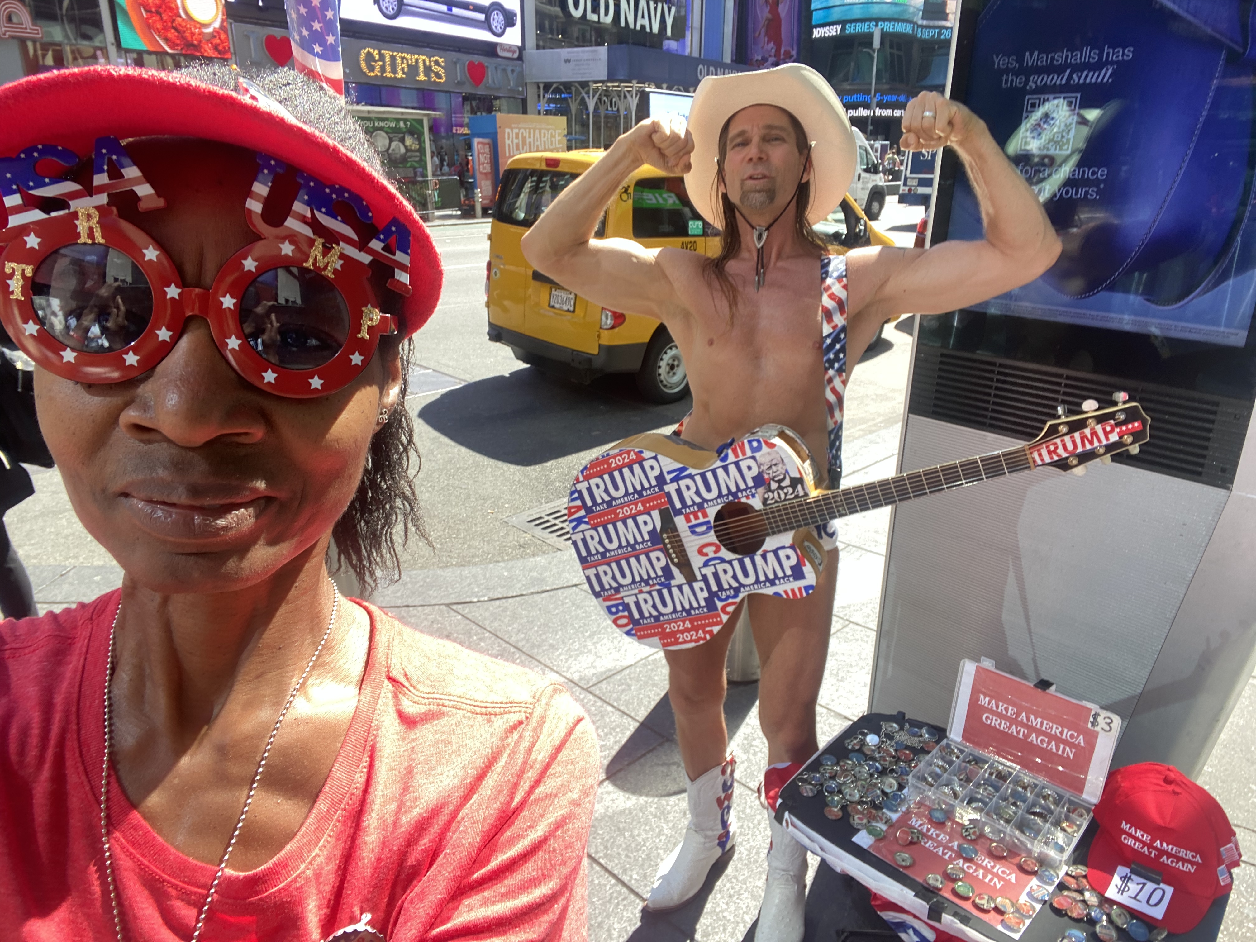 And then there was The Naked Cowboy and his Trump guitar in Times Square, New York City that I ran into and found myself hanging out with for one quick second in an attempt to vend that #trump2024 jewelry on Trump – Harris debate day in the midtown, Times Square area, somewhere in between 42nd and Broadway, Trump Tower, Bryant Park and 41st and 7th Avenue. And thanks Naked Cowboy for buying one of those #trump2024 necklaces, magnets, key chains and pins. And this was also a day that I found myself getting shut down about 5 times by traffic cops or whoever those security cops are that shut vendors down on the street, as in that video that finds itself posted above with reasons being something like “You have to be on the street and not the Avenue” or “Go to Sixth Avenue”.