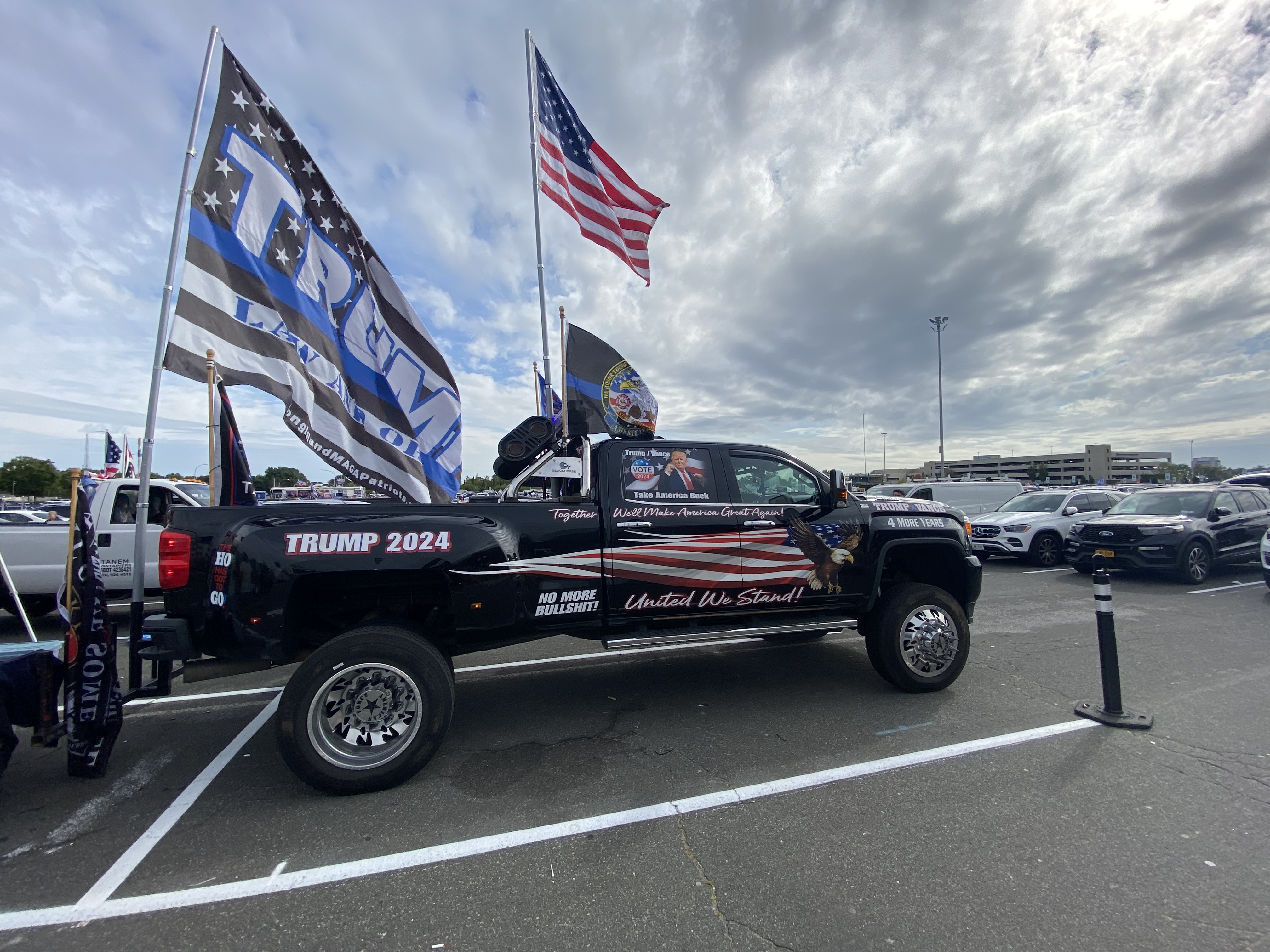 And so back to that Trump campaign rally at Nassau Coliseum in Uniondale or Long Island that I found myself attempting to vend that #trump2024 jewelry at on the Trump train a few days ago, as in those photos and videos that find themselves posted above. And 60,000 tickets were requested for this event and thousands of people lined the streets to see Trump on this day. And thank you Rocky Granata for buying that tray of #trump2024 jewelry and thank you Tina Forte for Congress for letting me give you one of those #trump2024 necklaces.