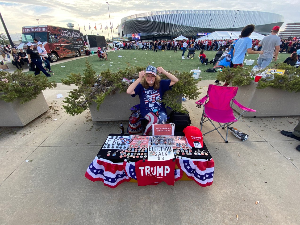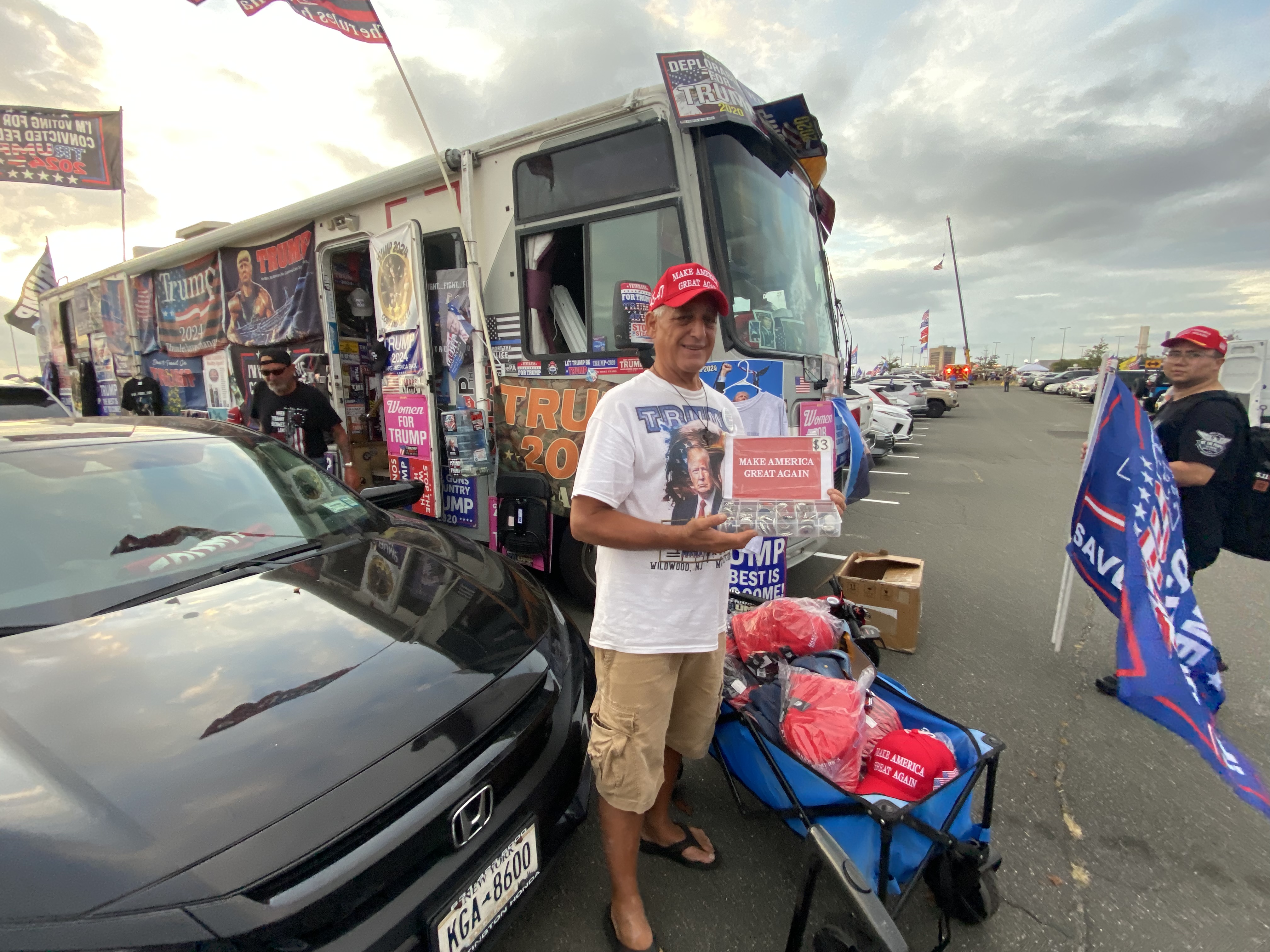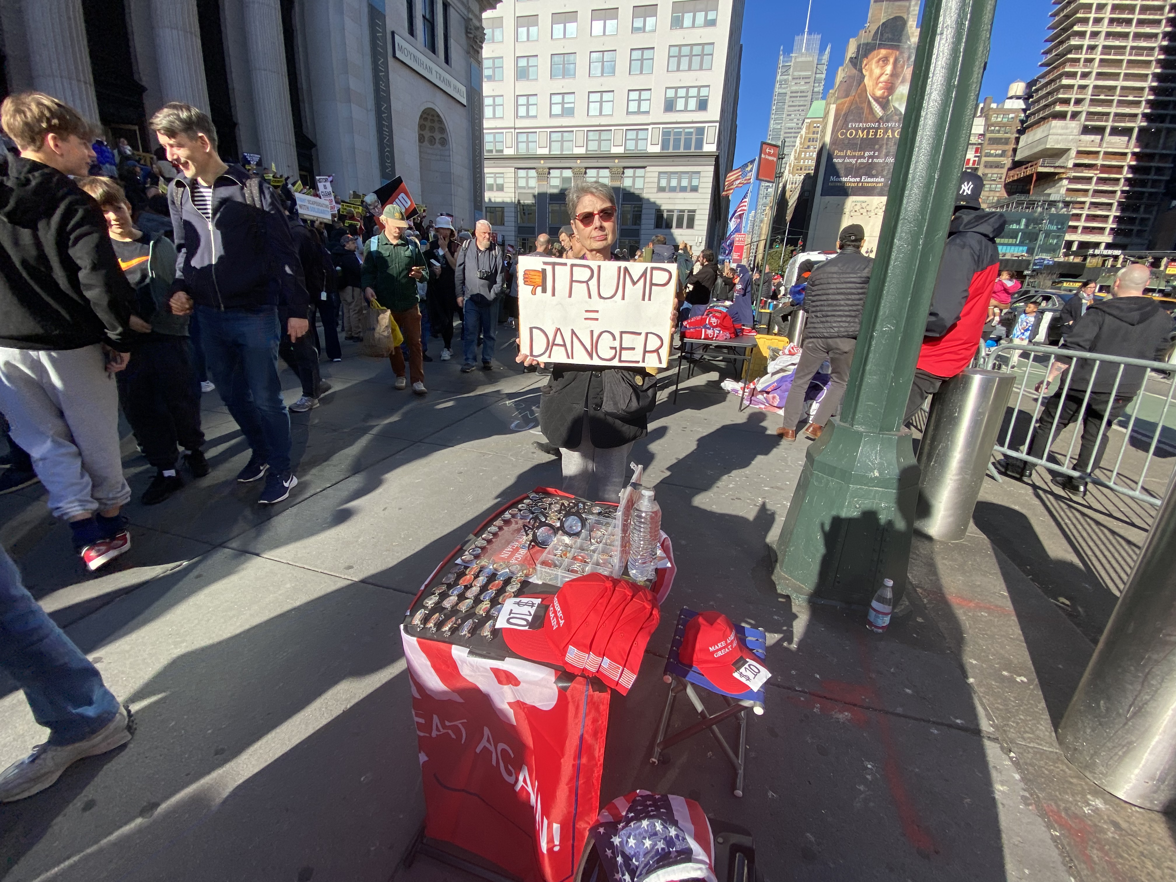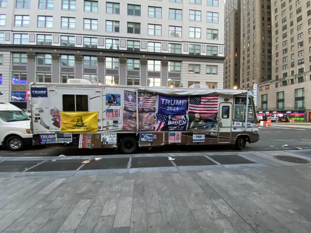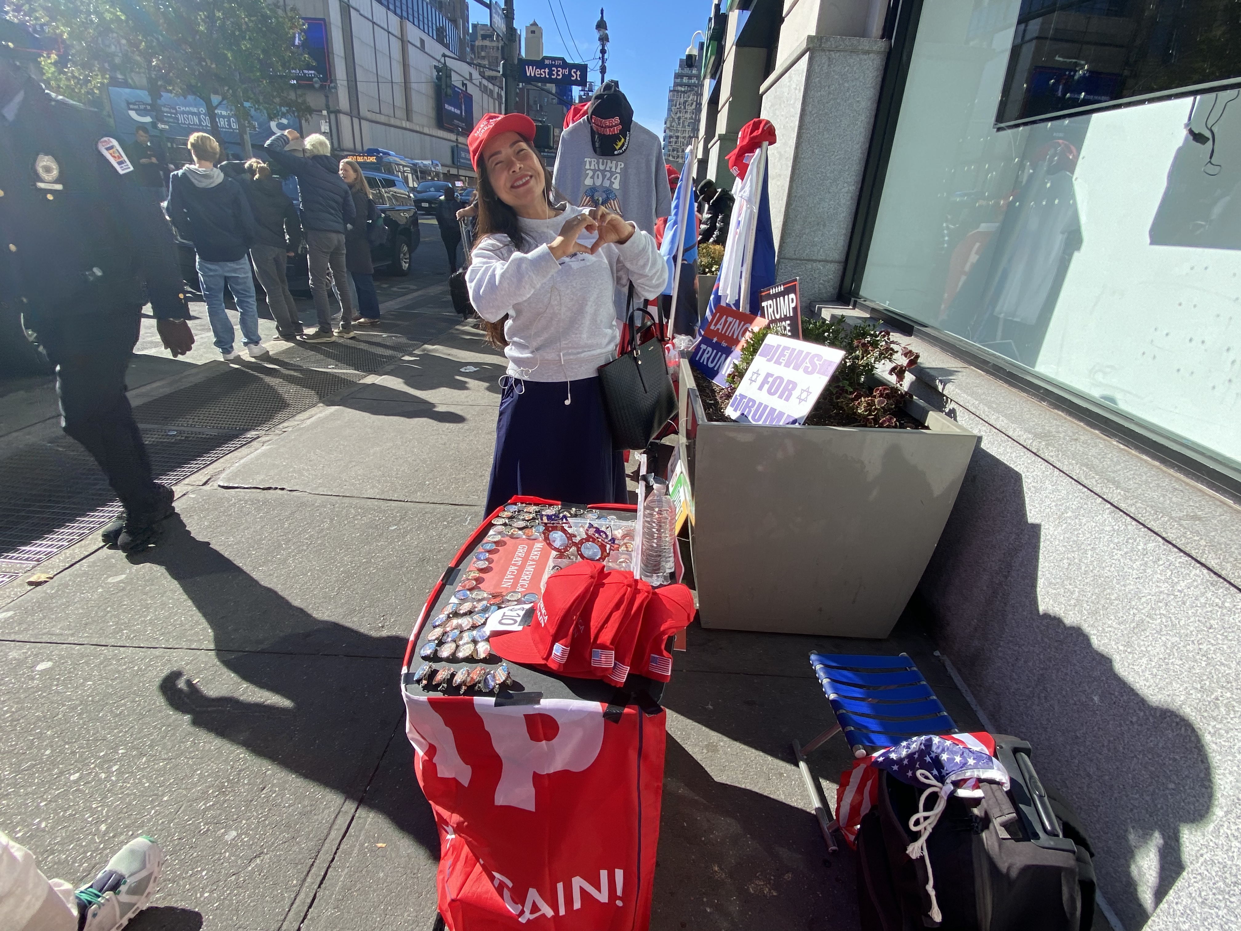 And so I find myself posting those Trump rally at Madison Square Garden in New York City photos and videos where I found myself attempting to vend those Trump 2024 necklaces, magnets, key chains and pins for $3 each again, along with a ton of other vendors who were selling Trump merchandise on this day, and this time it was at Trump’s campaign rally at Madison Square Garden where there were also anti Trump protesters in attendance.
