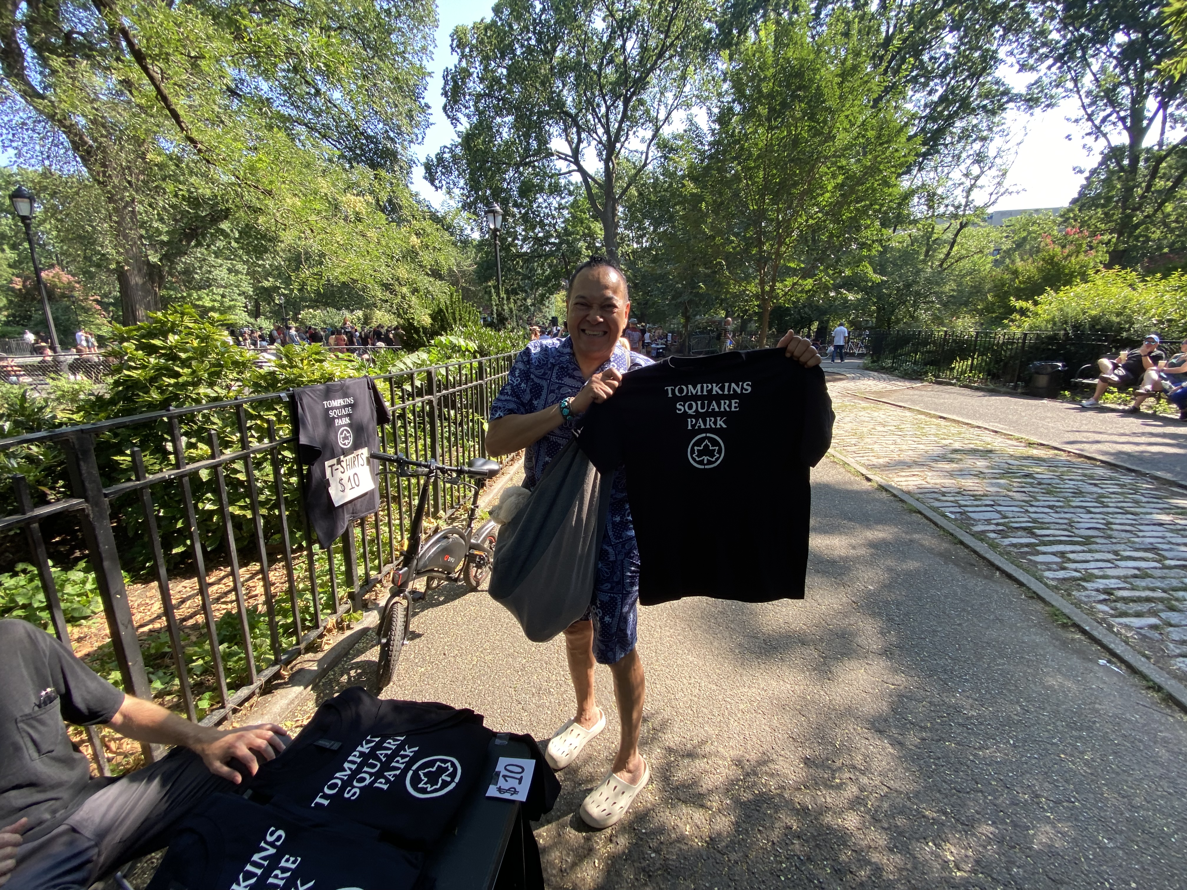 The New York City Parks Department has banned these Tompkins Square Park t – shirts because of the logo on them.