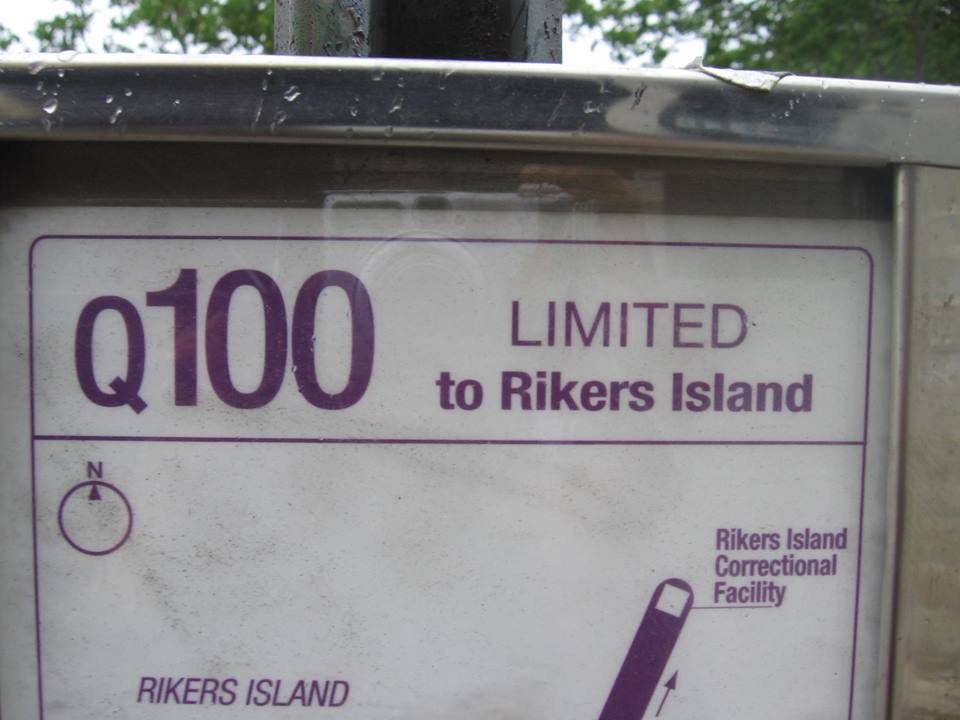 Directions: Q100 bus to the Rikers Island sign (right before the bridge) at the intersection of 19 Ave. & Hazen St. in Queens, from one of the following subway stations: (N/Q) Astoria-Ditmars Blvd, (F) 21 St- Queensbridge, (E/M/R) Queens Plaza, or (G) Court Square.
