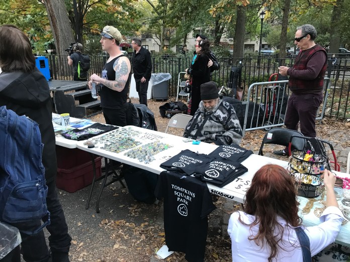 And in the midst of battling Murphy’s Law, It was an attempt to vend Tompkins Square Park T – Shirts  for $10 each and #blacklivesmatter #S#!tJustGotReal #notmypresident #nopolicestate #occupywallstreet #yoga #morus #theshadow #squat #tompkinssquarepark #unionsquarepark #washingtonsquarepark #eastvillage #lowereastside #brooklyn & #iloveny necklaces, magnets, key chains & pins for $2 each @ Tompkins Square Park, well, during Chris Flash’s Shows in Tompkins Square Park PsychoParkula! with a TompkinsSquareParkula Facebook event invite that reads like: